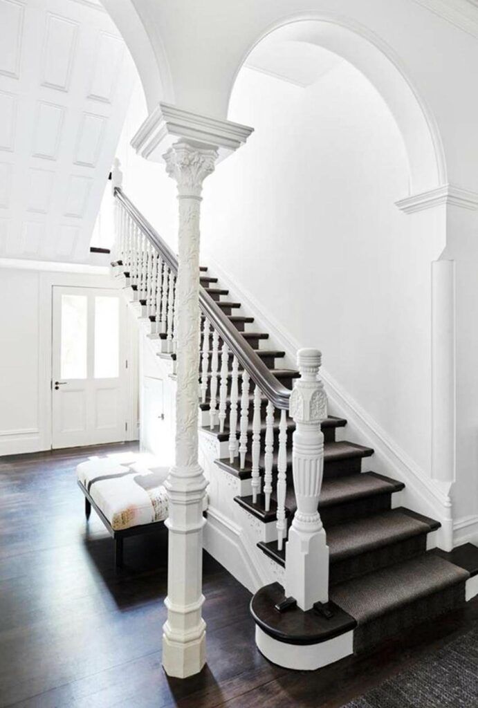 Tangga yang satu ini memiliki konsep dan nuansa tangga klasik, dimana nuansa klasik di sini terlihat pada bagian pegangan tangga dan ornamen samping tangga. Memiliki perpaduan warna hitam putih yang mencolok menjadikannya terlihat elegan dan sangat menarik.