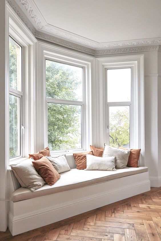 Jendela yang satu ini adalah model bow, di mana jendela yang satu ini dibuat sedikit melengkung dari tembok agar bisa dijadikan sebagai tempat interior seperti kursi ataupun tempat untuk menyimpan barang-barang.