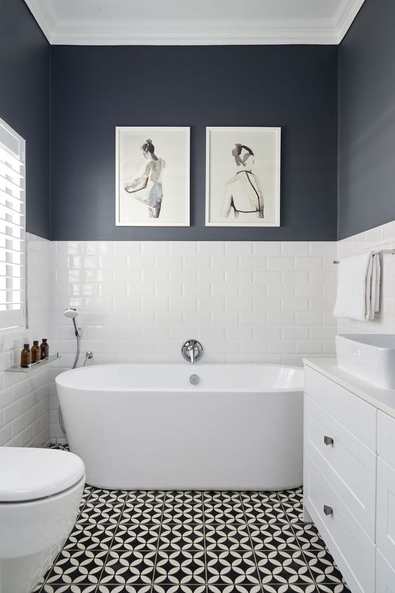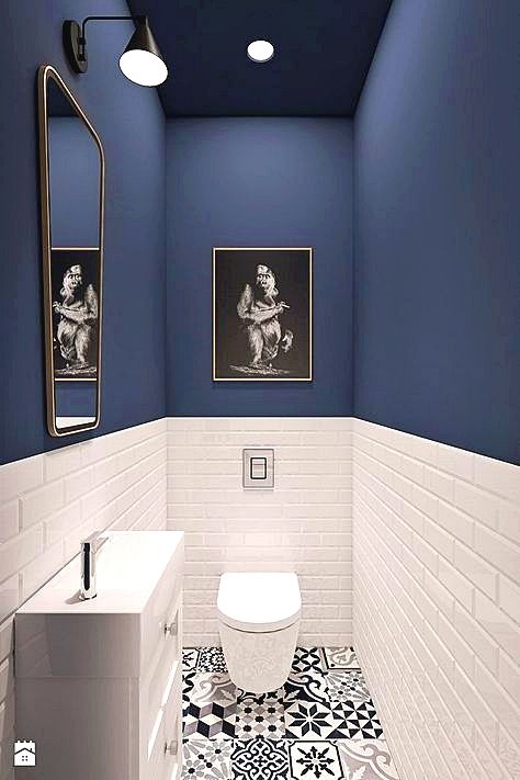 Kamar mandi yang satu ini mengusung konsep modern minimalis. Menggunakan perpaduan warna biru gelap dan juga putih menjadikan kesan warna yang menarik untuk bisa kita ikuti. Ditambah perpaduan pencahayaan yang bagus menjadikan kamar ini terlihat elegan berkonsep modern.