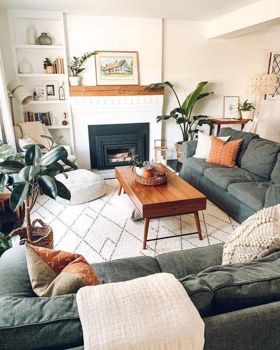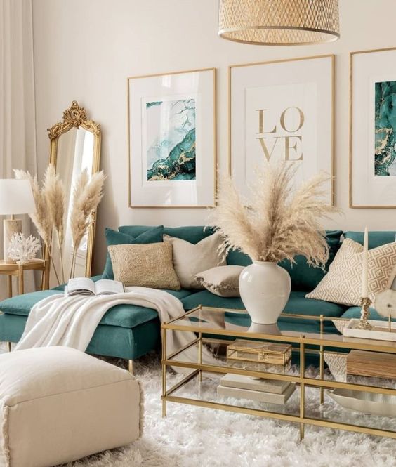 Ruang tamu yang satu ini terlihat sangat menarik dengan perpaduan warnanya yaitu coklat pada ada bagian dinding dan juga hijau pada bagian interior kursinya. Perpaduan warna ini terlihat sangat menarik dan juga artistik. Apalagi dengan ditambahkan hiasan bunga bunga kering menjadikan ruang tamu ini terlihat natural.