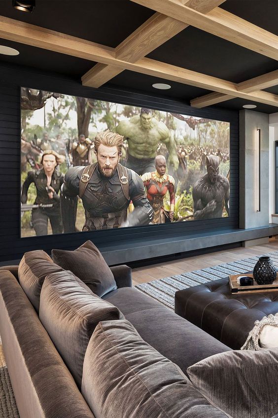 Ruang tamu yang satu ini terlihat sangat menonjol pada bagian hiburannya, di mana ruang tamu ini memiliki tv yang sangat besar cocok digunakan untuk keluarga nonton bareng. Mengusung nuansa konsep warna desain hitam dan juga coklat menjadikan ruang tamu ini terlihat natural dan nyaman.