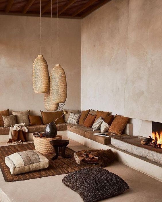 Ruang tamu bernuansa desain khas Maroko ini terlihat cukup menarik dan juga natural. Menggunakan warna dinding yang sesuai dengan aslinya menjadikan desain merokok ini terlihat estetik, apalagi dengan adanya tambahan interior berwarna coklat makin dan ini natural dan juga elegan.