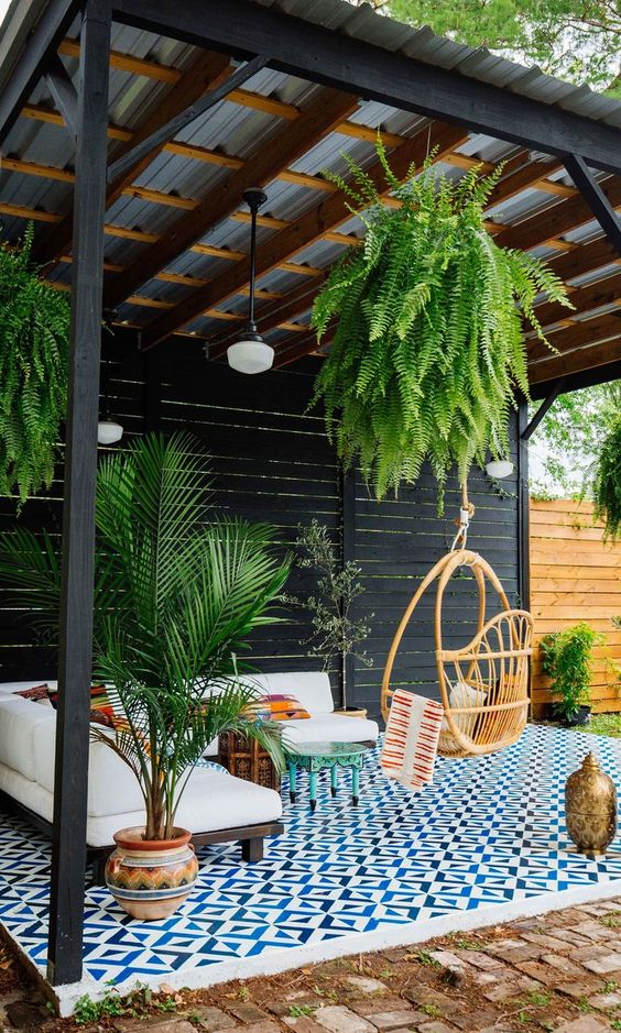 Gazebo yang satu ini menggunakan konsep modern dimana gazebo ini memiliki sofa berleter L dan juga kursi gantung untuk tempat bersantai. Tidak lupa menggunakan beberapa tanaman untuk memberikan kesan natural dan indah pada gazebo ini.