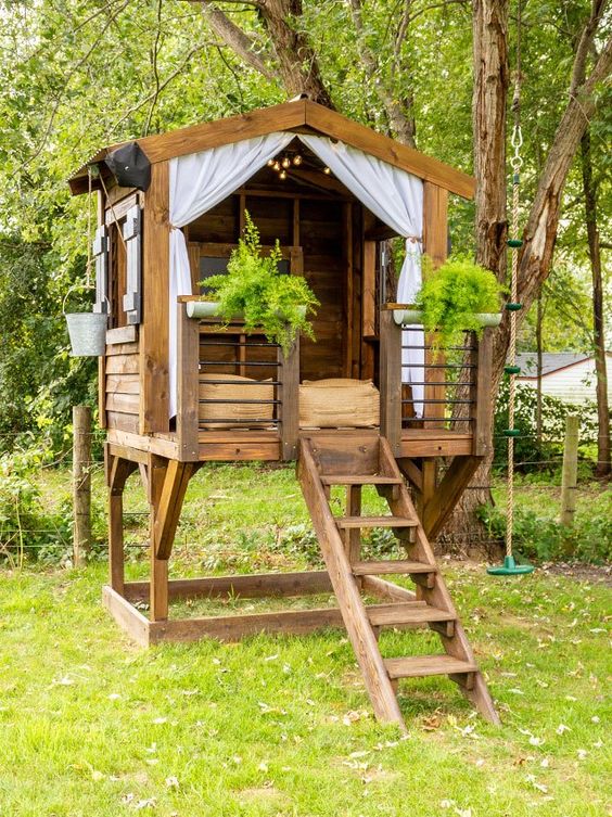 Gazebo yang satu ini memiliki konsep desain minimalis dengan seluruh bagiannya menggunakan bahan dasar kayu, gazebo ini cukup unik karena tidak langsung menempel pada tanah tapi menggunakan tangga kecil untuk naik ke atasnya. Gazebo ini cocok sekali untuk tempat istirahat maupun tempat bersantai karena pencahayaan yang bagus dan juga memiliki gorden untuk menjaga privasi.